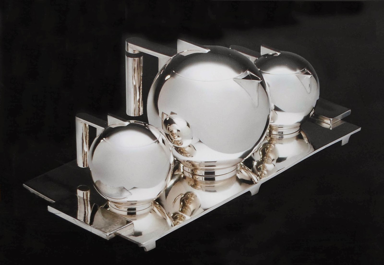 Como complemento a la sección de antecedentes vale la pena mencionar que en 1934, el arquitecto Buenrostro viajó a Nueva York, donde en el Metropolitan Museum of Art se presentaba la “Contemporary American Industrial Art Exhibition of 1934”. Ahí, entre muchas otras obras, se exhibió el Juego de té, firmado por Paul Lobel (1934), que ejecutado en metal plateado pasaría a ser parte de su colección y que aparece abajo…