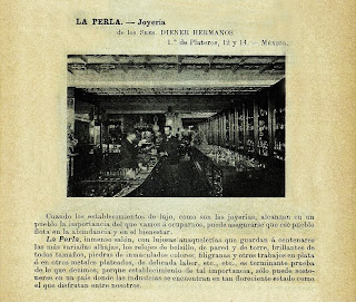 Los Sres. Diener Hermanos, laboriosos y emprendedores propietarios de “La Perla” … en su afán de corresponder a su clientela la decidida protección que les dispensa, mandaron construir en la esquina de la Profesa y callejón de Santa Clara, el hermoso edificio que acaba de inaugurarse y que en nuestro “boulevard” figura como una de las más preciadas joyas de ornato. La suntuosa finca tiene 35 metros de frente por 16 de fondo, y en su fachada se encuentran doce esbeltos aparadores que rematan en óvalo. Su entrada principal, de correctas proporciones y vistoso aspecto, cae a la calle de la Profesa y está destinada al público que visite el establecimiento. La otra, que ve al callejón de Santa Clara, se destina al servicio del escritorio, de los empleados y de las habitaciones. Los trabajos arquitectónicos son obra de los Sres. Ingenieros Dorner y Bacmeister.