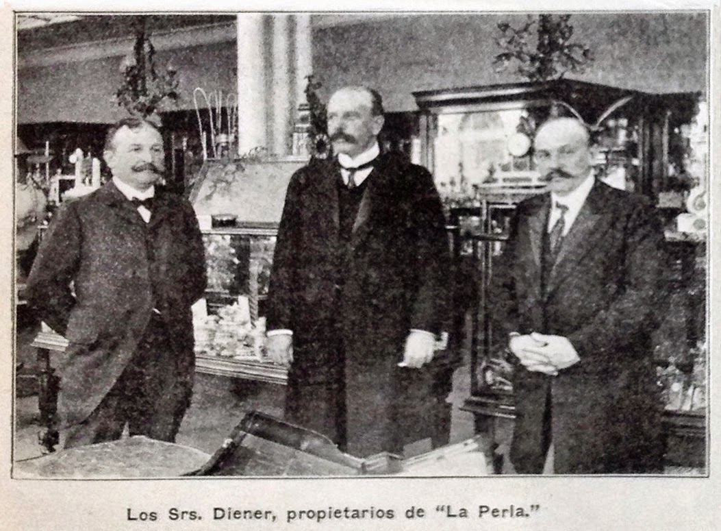 August (Agustín) Diener, hijo de Ludwig Diener 1825-1898 y Emma Roller era uno de los talentos del linaje de cinco hermanos emprendedores, integrado por Max Diener 1860-1919 (casado en 1895 con Gertrude Hermann 1874-1950), Richard Diener (casado con Enriqueta Struck Álvarez 1862-1931), Adolf Theodor Diener 1864-1914 (casado con Norina Bolognese 1878-1946) y Ludwig Adolf Luis Diener 1875-1943 (casado el 12 de diciembre 1916 con Dore Wendland von Gerzo). Cuatro de los hermanos –Max, August, Richard y Adolf-- vivieron en el México del porfiriato y crearon entre 1879 y 1881 una compañía importadora de anillos, relojes y abalorios llamada “PERLE”, que con sus conexiones en Pforzheim (con la fábrica de argollas de la familia Diener, a cargo del hermano mayor Max) y pasado el tiempo pasó a ser la importante «Joyería y Relojería “La Perla”»…