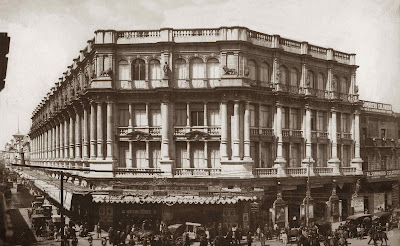 En la imagen de arriba -expuesta por Guillermo Kahlo en 1909- aparece el edificio del banco, frente a la Plaza del Colegio de Niñas que todos llamaban “Plazuela de la ranita” por la fuente adornada con la escultura de una rana tocando una mandolina que puede distinguirse abajo a la izquierda; para 1910 en la plaza se colocó el Reloj Otomano, obsequiado por la colonia turca a la Ciudad de México.